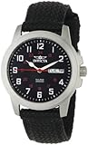 - Durable mineral crystal; brushed stainless steel case; black canvas strap